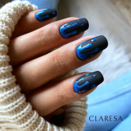 1: lak de nagels met de 900 zwarte gellak van Claresa en hard je nagels uit onder de nagellamp,